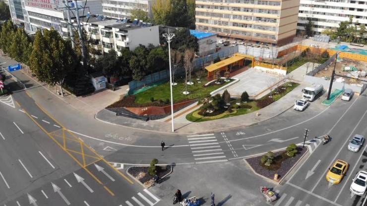 改造完成后,共青团路金宇路非机动车道、人行车道将得到完善,实现人车分流、渠化顺接,新建的导流岛也为城市增光添彩。