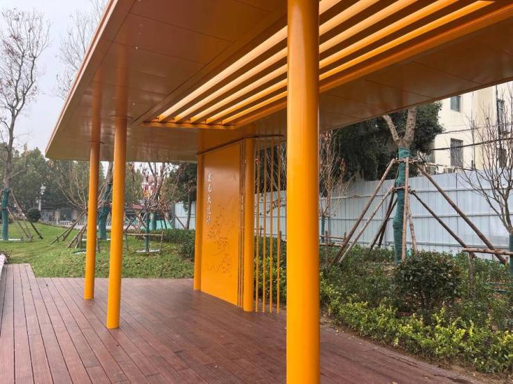 在气象局宿舍、水务集团宿舍原址上,一座充满了运河元素的口袋公园已基本建成,该公园约1500㎡,聘请上海市政工程设计研究总院设计而成,以橙色为主色调的公园整体以潮流街角为主题,分为潮流健身场地、休闲廊架、精品绿化组团等三块区域。在钢结构花坛上,书写着京杭大运河济宁段相关历史知识;休闲廊架下,以“遇见大运河”为主题的展示中将南旺分水枢纽地图、古运河走势图融入其中,展现了济宁“运河之都”的历史底蕴和文脉气质。