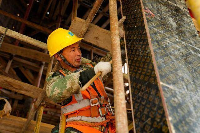“我的工作主要是砌筑主体,这些建筑主体我基本上都参与了。”手持工具的朱本君,言谈之间亦没有停下手中的活儿,而谈及工作,他更是难掩自豪之感。在他眼中,一砖一瓦都有着特殊的意义,而他所砌筑的每一块砖,都代表着他为家乡建设所尽的绵薄之力。因此,纵使石材冰凉刺骨,但依然阻挡不住他砌筑的速度,以及对新开工的火热之情。