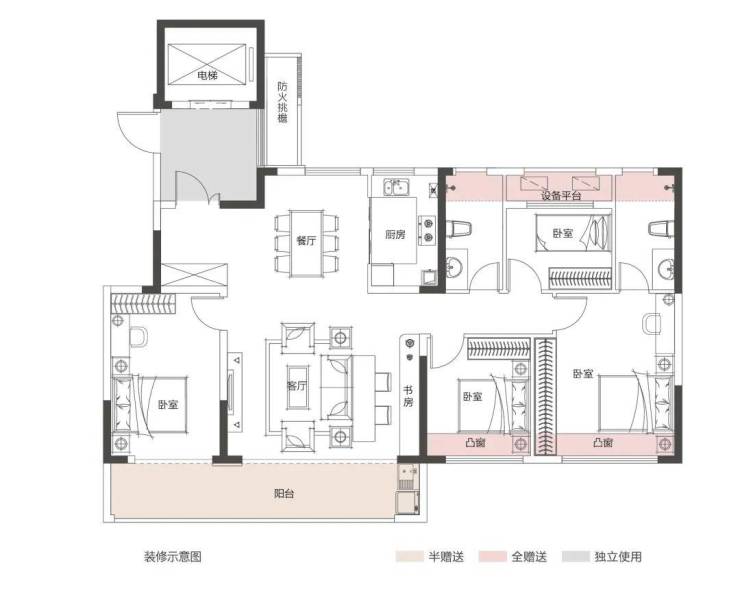 少承重墙的设计,户型空间可塑性极强,三房/四房/五房随心改造, 打造适合全家人的空间功能,自由切换生活场景。