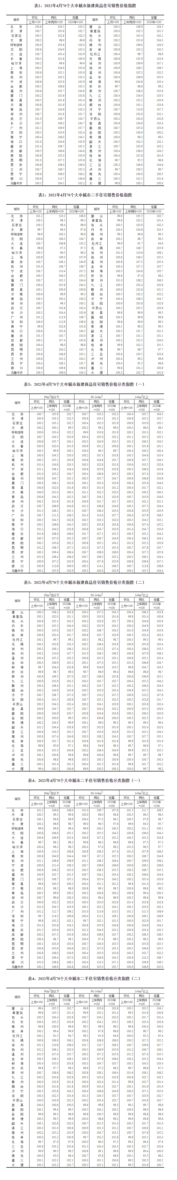 国家统计局城市司首席统计师绳国庆解读2021年4月份商品住宅销售价格变动情况统计数据:4月份,统计监测的70个大中城市新建商品住宅销售价格涨幅总体有所扩大,二手住宅涨幅有升有落。
