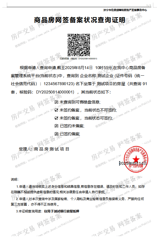5.扫描查询证明中的二维码,或登录济宁市住房保障和房地产发展事务中心官网,即可核验查询证明相关信息。