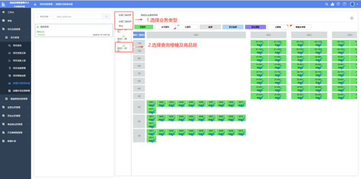 1.登录房地产开发企业客户端,选择业务类型、需要查询的楼幢。