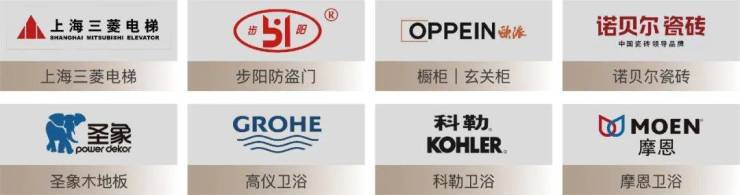 项目全产品精装交付,实现室内8大区域精装,并且遴选圣象木地板、诺贝尔瓷砖、施耐德电气、欧派橱柜、高仪/科勒/摩恩卫浴、步阳入户门等知名品牌。