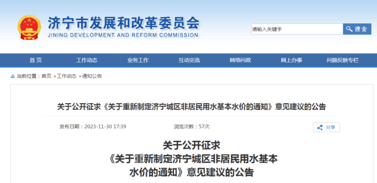 公开征求意见!济宁城区非居民用水基本水价将重新制定