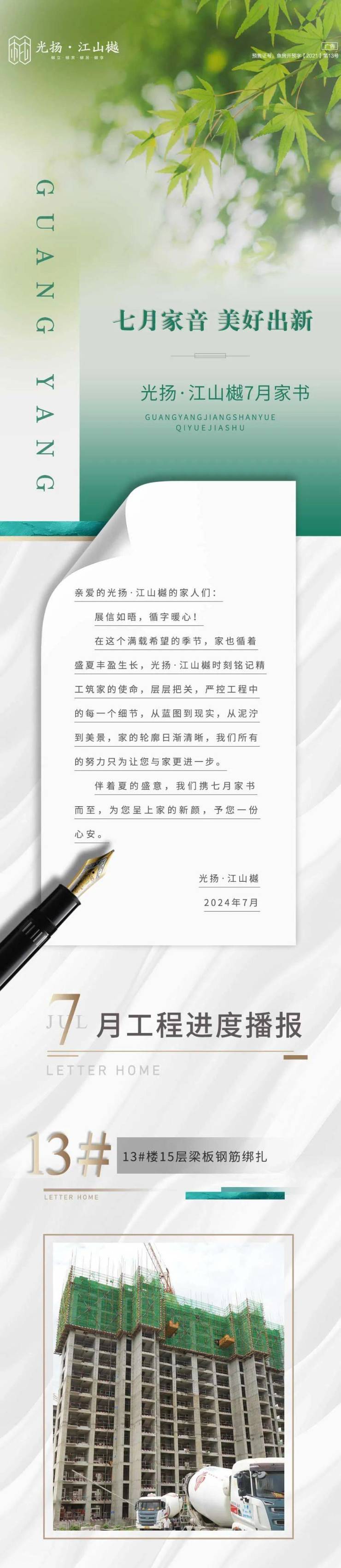 在这个满载希望的季节,家也循着盛夏丰盈生长,光扬·江山樾时刻铭记精工筑家的使命,层层把关,严控工程中的每一个细节,从蓝图到现实,从泥泞到美景,家的轮廓日渐清晰,我们所有的努力只为让您与家更进一步。