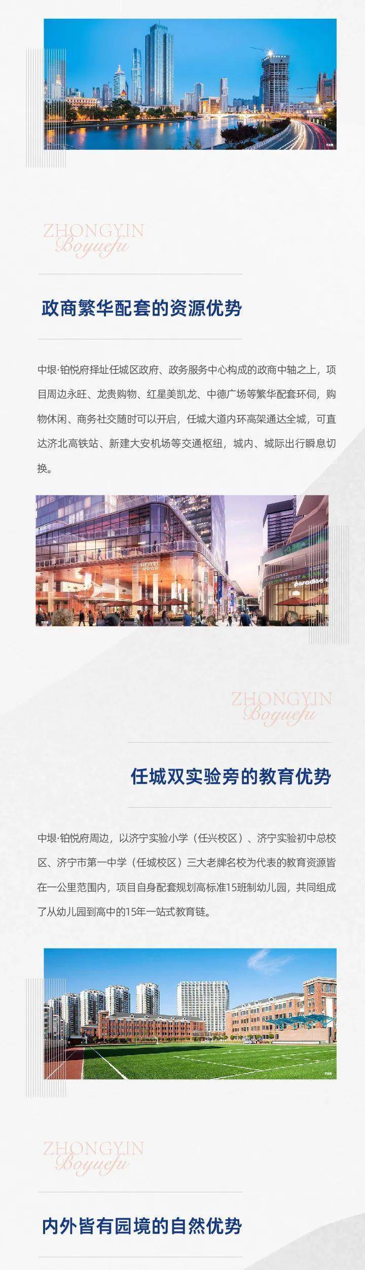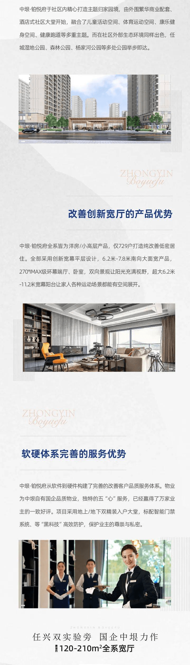 中垠·铂悦府全系皆为洋房/小高层产品,仅729户打造纯改善低密居住。全部采用创新宽幕平层设计,6.2米-7.8米南向大面宽产品,270°IMAX级环幕端厅、五十、双向景观让阳台充满视野,超大6.2米-11.2米宽幕阳台让家人各种运动场景都能有空间展开。
