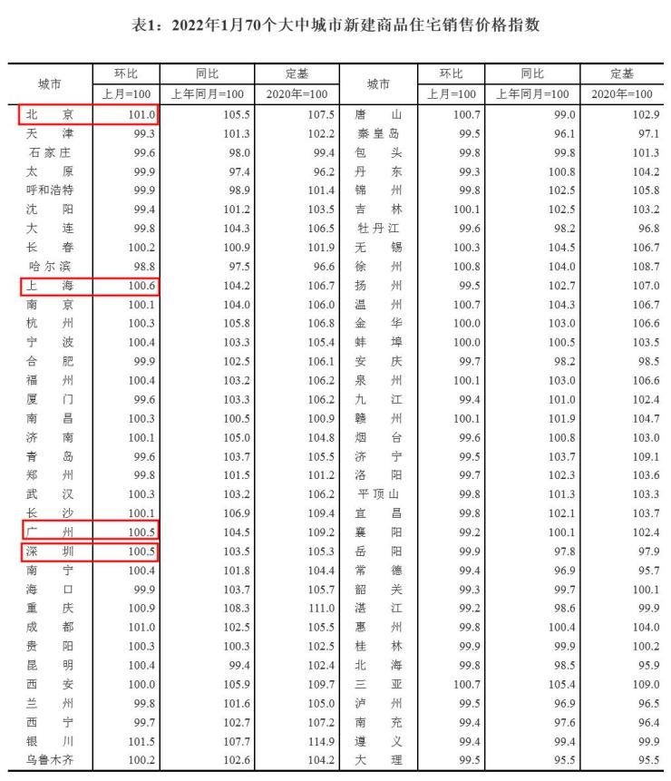 国家统计局数据显示,新房方面,1月份,一线城市新建商品住宅销售价格环比由上月下降0.1%转为上涨0.6%,其中北京、上海、广州和深圳分别上涨1.0%、0.6%、0.5%和0.5%;二线城市新建商品住宅销售价格环比由上月下降0.3%转为上涨0.1%。三线城市新建商品住宅环比下降0.2%。