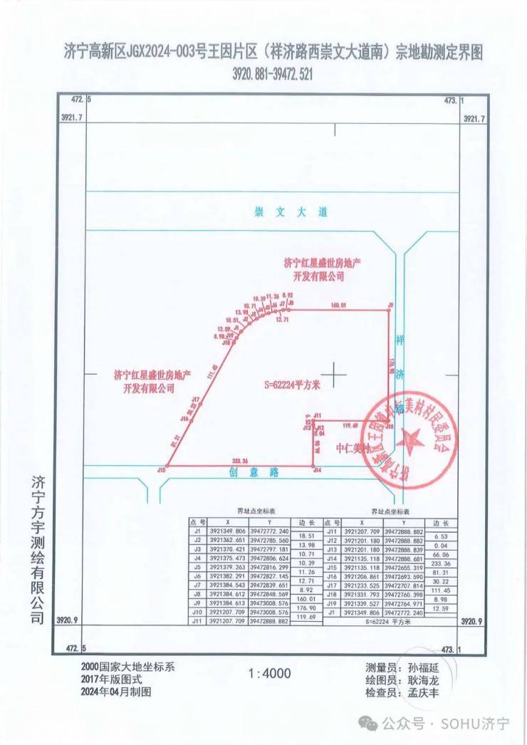 地块一:济宁高新区JGX2024-003号王因片区(祥济路西崇文大道南)宗地【济宁红星盛世房地产开发有限公司竞得】