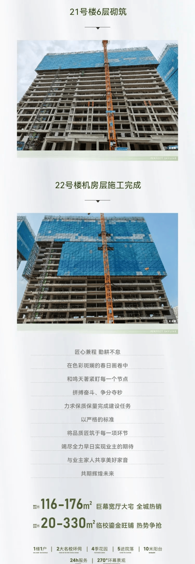 匠心兼程,勤耕不怠。在色彩斑斓的春日画卷中,城投泽信·和鸣天著紧盯每一个节点,拼搏奋斗、争分夺秒力求保质保量完成建设任务。以严格的标准,将品质匠筑于每一项环节,竭尽全力早日实现业主的期待。与业主家人共享美好家音,共期辉煌未来。