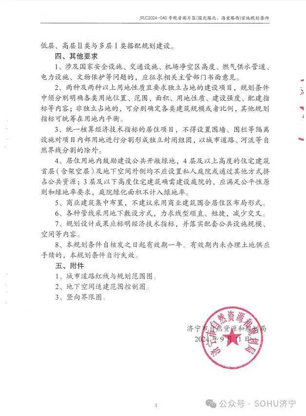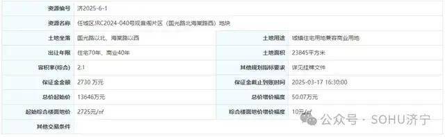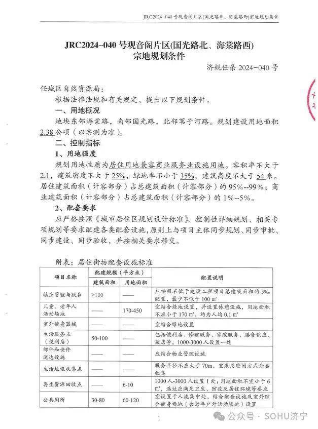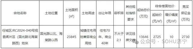 地块名:任城区JRC2024-040号观音阁片区(国光路北海棠路西)地块【济宁市佳兴房地产开发有限公司竞得】