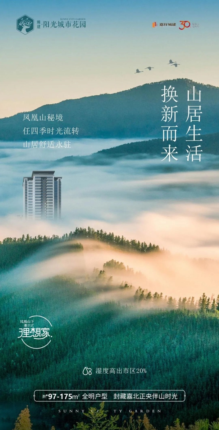 山居生活,换新而来。凤凰山秘境,任四季时光流转,山居舒适永驻。湿度高出市区20%,阳光城市花园建面约97-175㎡全明户型,封藏嘉北正央伴山时光。