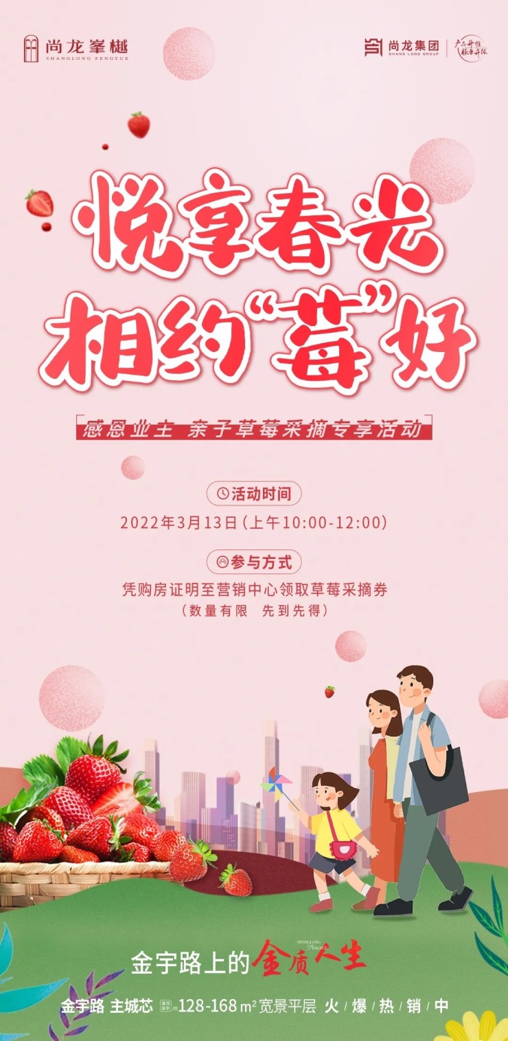 济宁尚龙峯樾,草莓采摘正当时,遇见“莓”好春天。济宁尚龙峯樾,约128-168 ㎡宽景大平层。