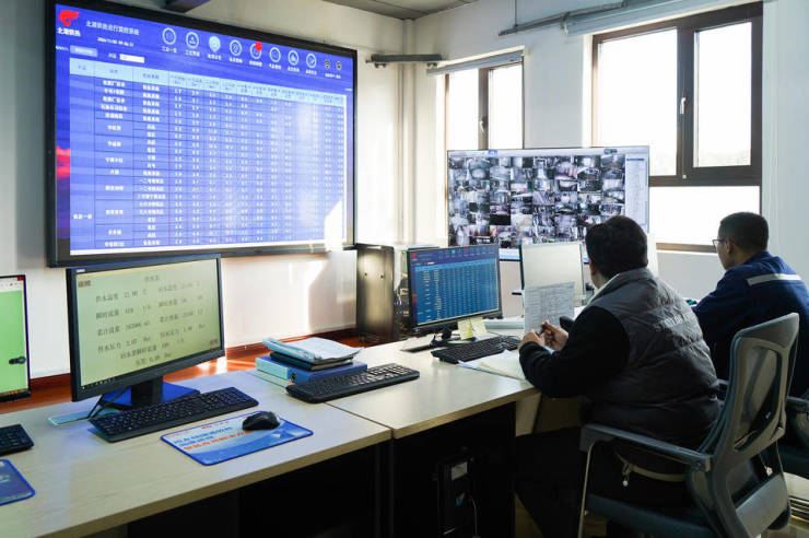 在北湖供热运行中心供热综合监控平台,除了主管网和二次管网的温度以外,每个小区换热站进水温度和出水温度也一目了然,工作人员紧盯屏幕,及时捕捉数据变化,从而进行调整和修正。在运行中心的另一侧,人工客服正接听用户的来电,将问题记录在供热管家app系统上,并派发工单。工单一旦派发,一线工作人员将在半小时内受理。