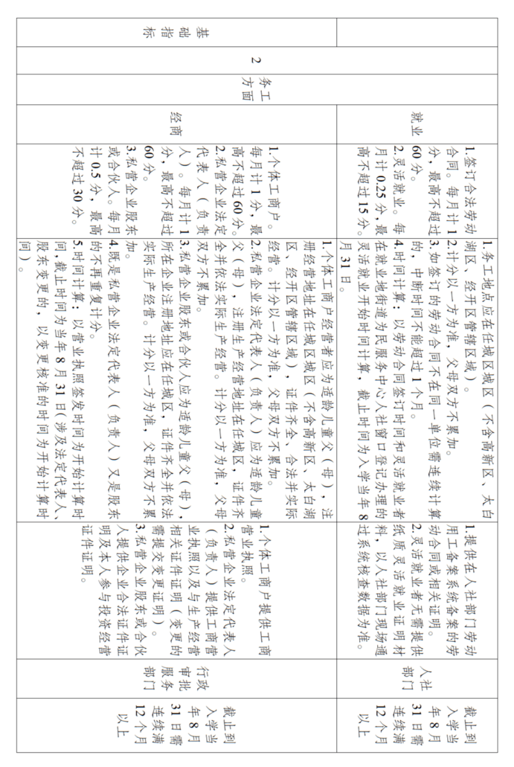 3.务工方面、参保情况、文化程度、职业资格、专业技术职称、纳税情况等材料须为同一位监护人的;居所方面、居住证等材料可为不同监护人的。