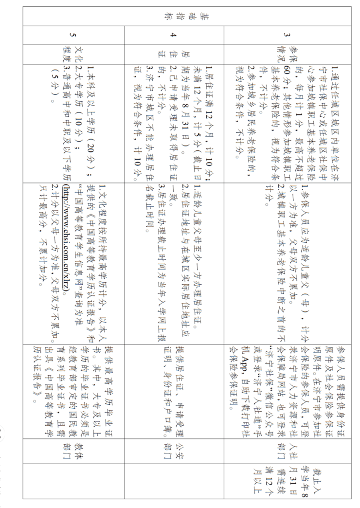 具体积分指标及分值详见《济宁市任城区进城务工人员随迁子女积分入学分值表》(见附件)。