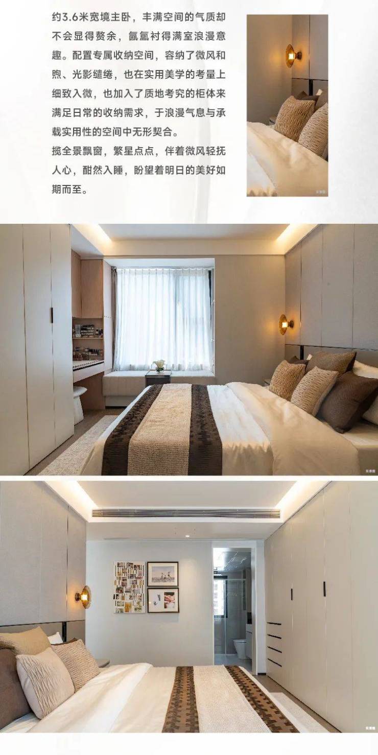 城投泽信·和鸣天著约3.6米宽境主卧,丰满空间的气质却不会显得赘余,氤氲衬得满室浪漫意趣。配置专属收纳空间,容纳了微风和煦、光影缱绻,也在实用美学的考量上细致入微,也加入了质地考究的柜体来满足日常的收纳需求,于浪漫气息与承载实用性的空间中无形契