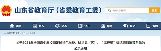 近日,山东省教育厅发布《关于2021年全国青少年校园足球特色学校、试点县(区)、“满天星”训练营拟推荐名单的公示通知》,济宁多所学校榜上有名。原文如下: