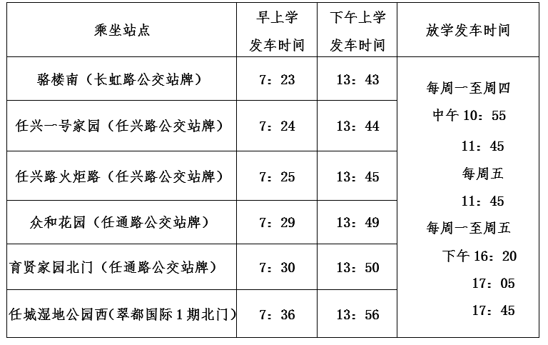 6、车辆按点发车,因个人原因造成未按时乘车的,由家长送学生到校或采取其他交通方式解决。因路况、天气等原因造成到站晚点的,请学生耐心在站点等待乘车。