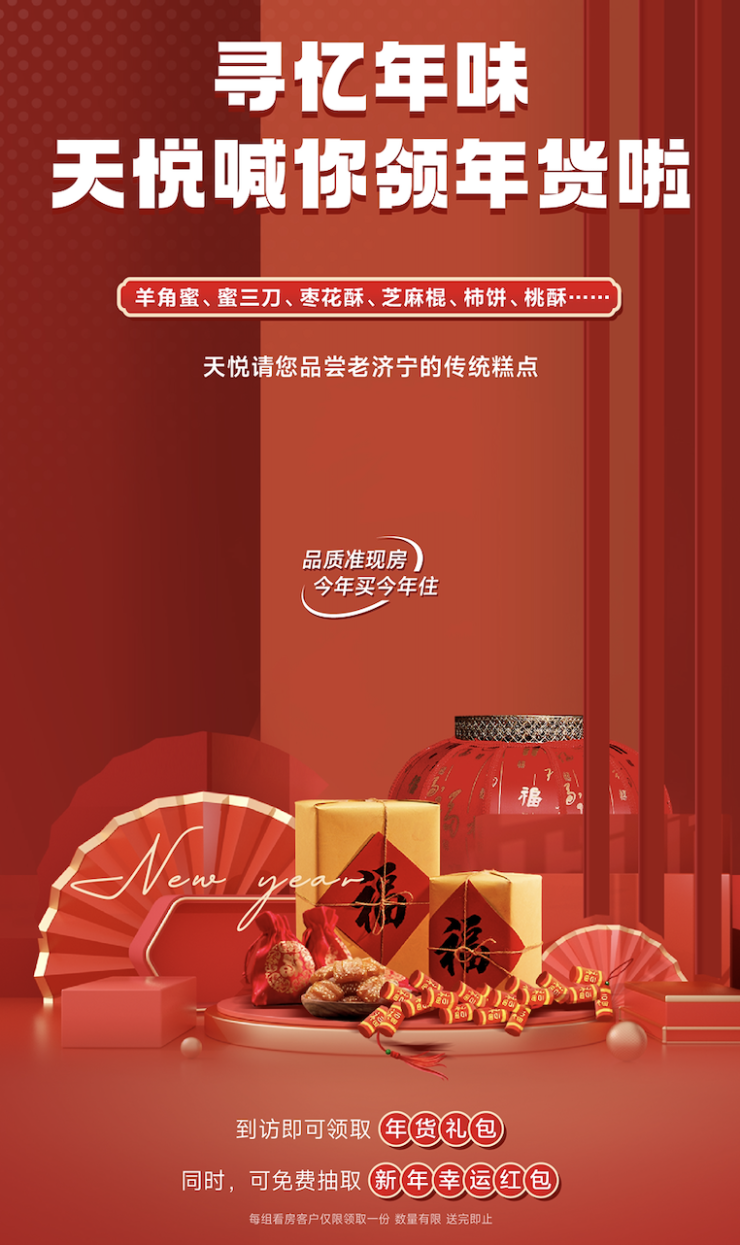 团团圆圆是除夕,守岁欢颜是今夕。霓虹璀璨不抵家灯一盏,是时候给自己一份美好 “家”奖,与充满向往和美好的2024来一场全新邂逅。值此新春佳节之际,不妨携家人来城投瑞马·天悦转转,寻忆老济宁的传统美味,年货大礼包免费赠送,更可抽取属于您的新年幸运红包!