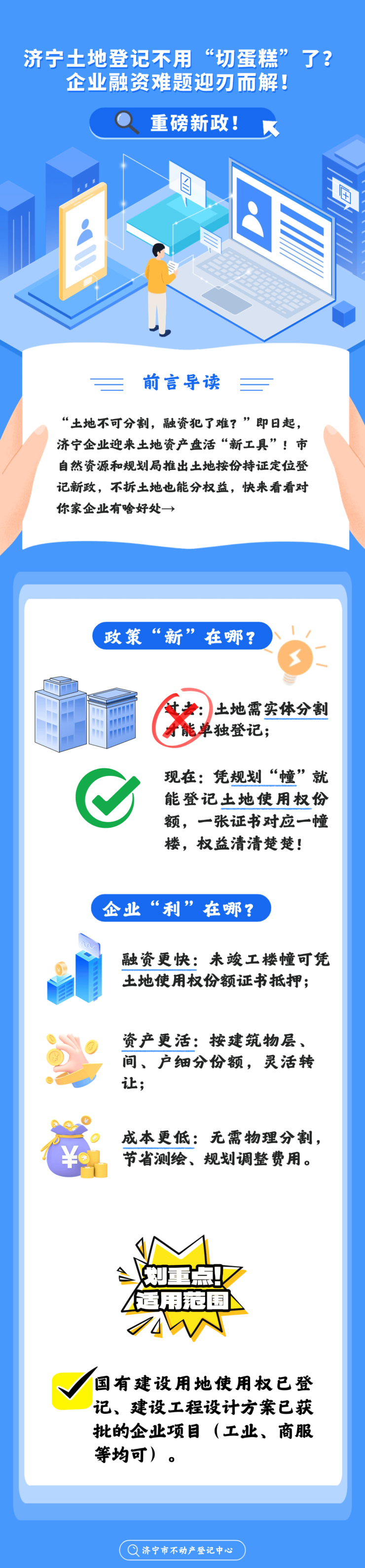 一图读懂·土地按份持证丨重磅新政!济宁土地登记不用“切蛋糕”了?企业融资难题迎刃而解!