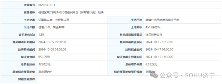 1. 任城区JRC2024-030号任兴片区(环翠路以南)地块:2024年10月5日9时00分至2024年10月17日9时00分;