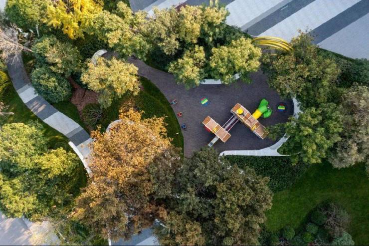 以蜜蜂与小伙伴们在林中探索游玩的故事线为主题,江悦的蜂巢乐园分龄段满足不同年龄段孩子的体能、兴趣和社交需求。铺装EPDM彩色陶瓷颗粒,设置家长陪伴休息区和储物功能空间,只为给业主的家庭生活增添更多陪伴意趣。