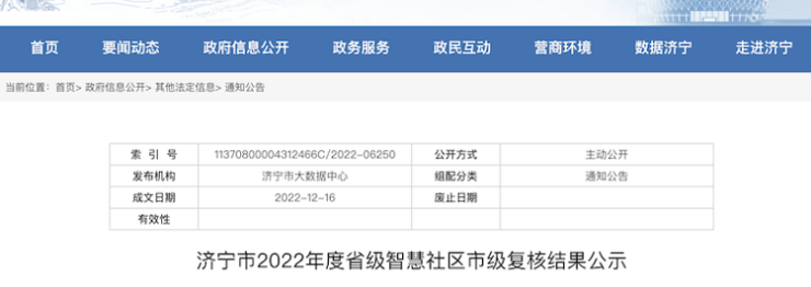 169个!济宁市2022年度省级智慧社区市级复核结果公示