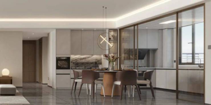 将客厅、餐厅、厨房、阳台四大公区融合