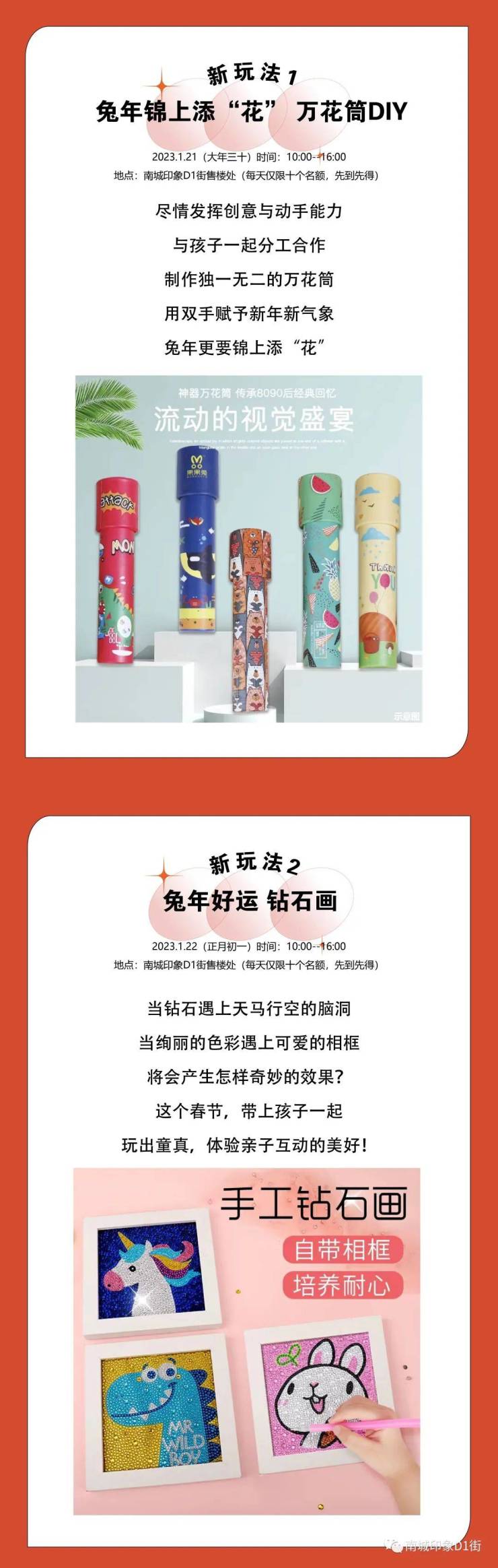 兔年锦上添“花”,万花筒DIY。尽情发挥创意与动手能力,与孩子一起分工合作,制作独一无二的万花筒。济宁南城印象用双手赋予新年新气象,兔年更要锦上添“花”。