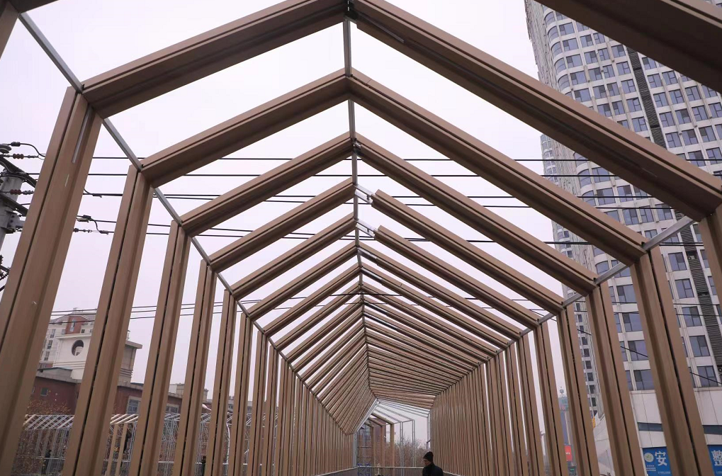 记者了解到,该天桥地处商业街区,为提升城市品质,在外形设计上该天桥造型新颖,极具现代气息,在天桥主体上,不锈钢制作的外镂空框架如海浪般起伏,远远望去,在三座商业体间似用绸带连接在了一起。“不仅在天桥外面我们将会进行亮化,天桥通道内也使用了LED灯带进行装饰,投入使用后将会给市民带来梦幻般的使用体验。”蔡昊表示,1月20日左右,该天桥将完成景观亮化和电梯调试,以华丽姿态和市民见面。