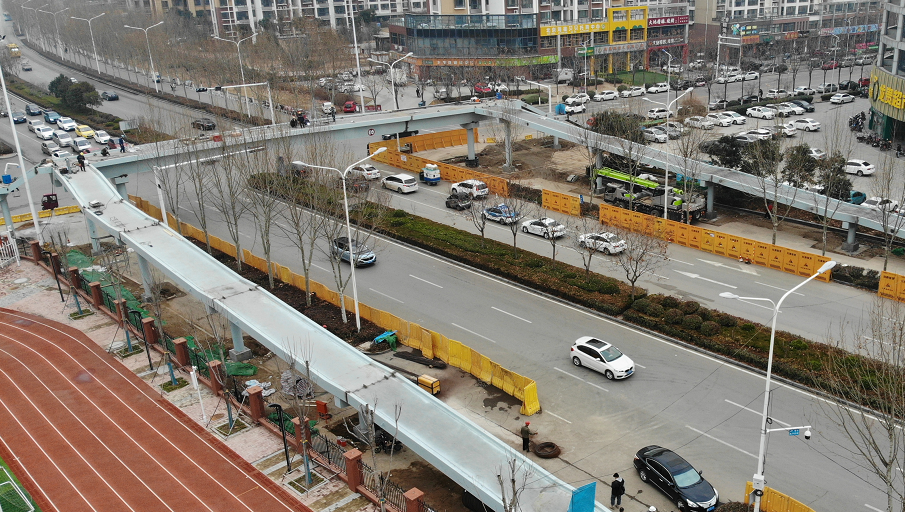1月20日,杨柳街人行过街天桥也将投入使用,项目建成后,将有效减少附近崇文小学和崇文中学学生上放学、行人过街对于崇文大道车流的影响,保障行人横向跨越崇文大道安全。