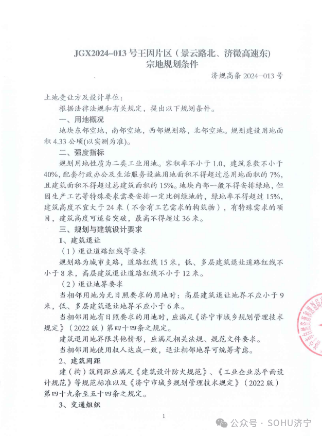 地块二:济宁高新区JGX2024-013号王因片区(景云路北、济微高速东)宗地【山东东达智能装备有限公司竞得】