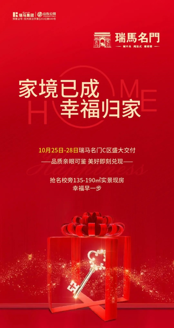 在万众期待之下,【瑞马名门】C区家期将至 交房在即!美好生活从蓝图变成现实,一段幸福、舒适的归家旅程即将马上开启。