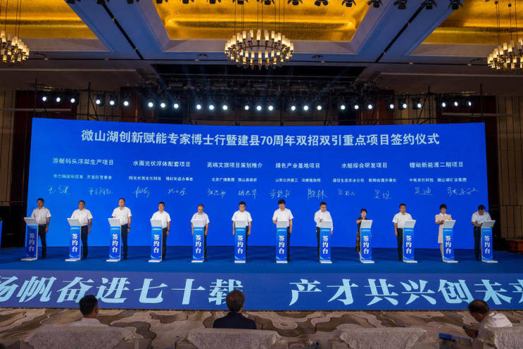 7月21日—22日,微山湖创新赋能专家博士行暨建县70周年双招双引重点项目签约仪式在济宁市微山县举行。现场签约了12个总投资50余亿元的招商项目。此次活动的举办,是微山县坚持招才引智与招商引资“同频共振”、创新驱动与招商带动“两动并进”的一个缩影。