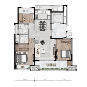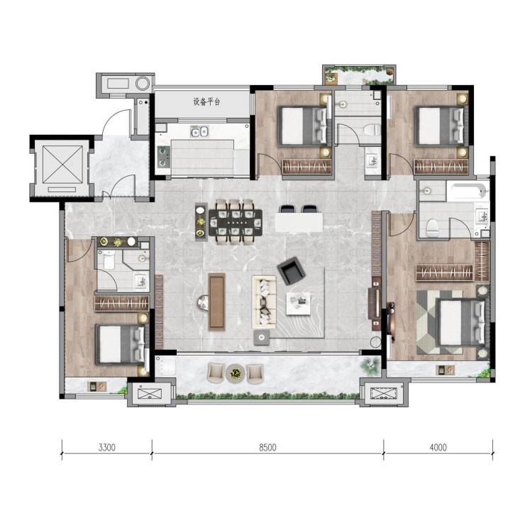 在实际户型设计上,这样的宽厅所能起到的所用远超我们的想象。以建面约173㎡的洋房户型为例,最大约8.5M的客厅开间,不仅视觉空间感极强,动线设计更加灵活,更可以灵活延展“第五居室”,为生活预留更多可能。