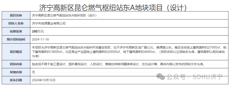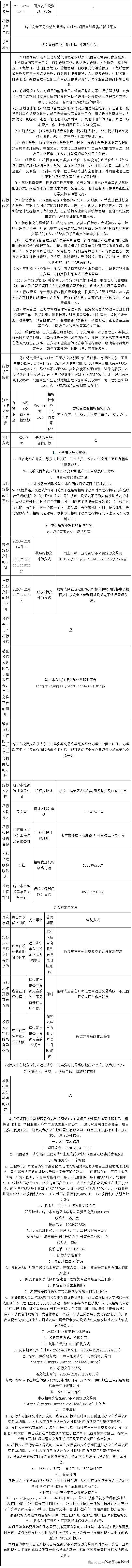 2024年12月4日济宁高新区昆仑燃气枢纽站东A地块项目全过程委托管理服务招标公告