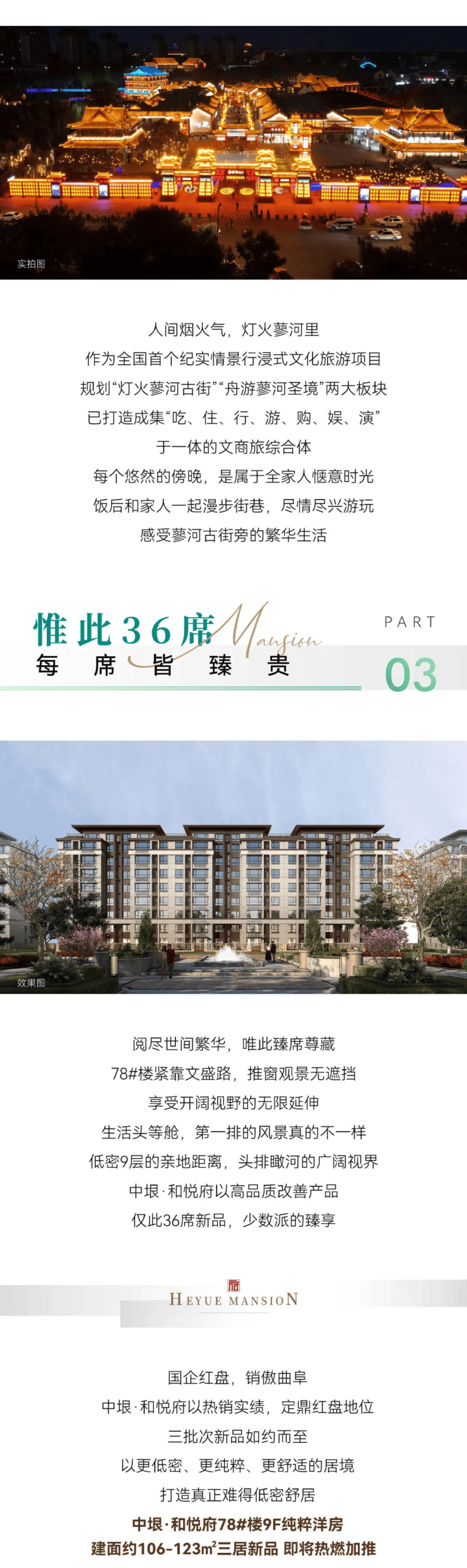 阅尽世间繁华,唯此臻席尊藏,78#楼紧靠文盛路,推窗观景无遮挡。享受开阔视野的无限延伸,生活头等舱,第一排的风景真的不一样。低密9层的亲地距离,头排瞰河的广阔视界,中垠·和悦府以高品质改善产品,仅此36席新品,少数派的臻享。