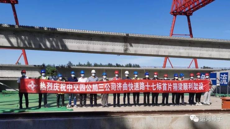 进度再提速!济曲快速路C17标段首片预制箱梁成功架设