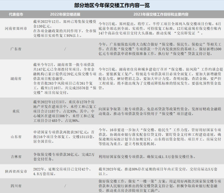 事实上,基于去年的“保交楼”成果,各地政府在今年提出了“保交楼”的新目标和新任务,郑州等城市还提出了“消灭”烂尾楼的工作计划。
