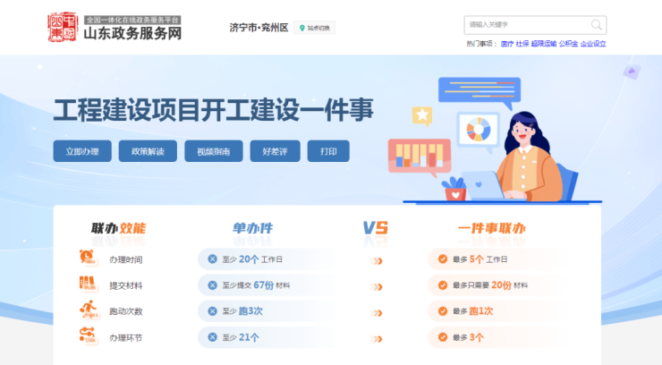 今年以来,济宁市兖州区行政审批服务局通过“一件事”双效集成办理模式,提升了联办服务效能,切实加快了企业的开工速度。据悉,“水电气暖网联合报装一件事”与“工程建设项目开工建设一件事”中共包含23个子项业务,双效集成办理模式的推出,将原本需要提供的105项材料精简至31项,办理时间减少至5个工作日,同时添加了办理事项复选框,企业可自行选择需要办理的业务,一次提报、联合办结,有效解决企业“不会办、反复跑、多次问”等问题,让企业办事省时、省力、更省心。