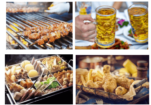 烤羊肉串、烤面筋、关东煮、炸鸡……