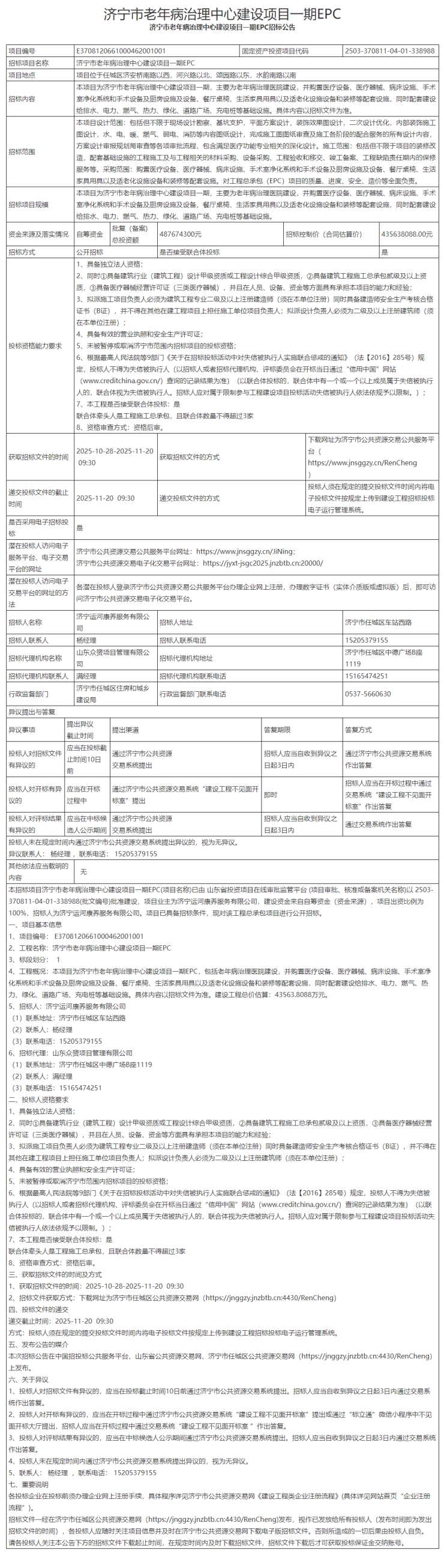 工程名称:济宁市老年病治理中心建设项目一期EPC