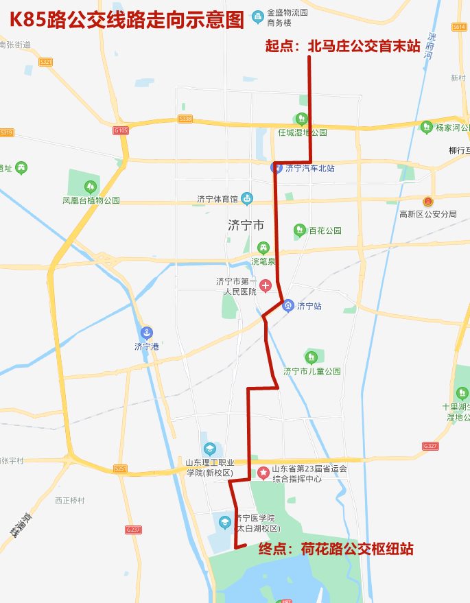 K85路线路起止点:北马庄公交首末站—荷花路公交枢纽站