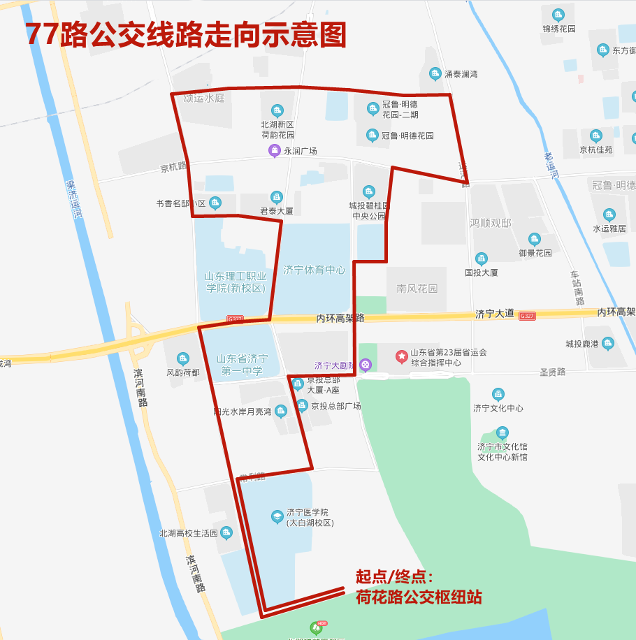 不再停靠:公交四分公司、颂运水庭A区东门、北湖小学、青莲路渔皇路、太白湖景区、济宁医学院等6处公交站点。