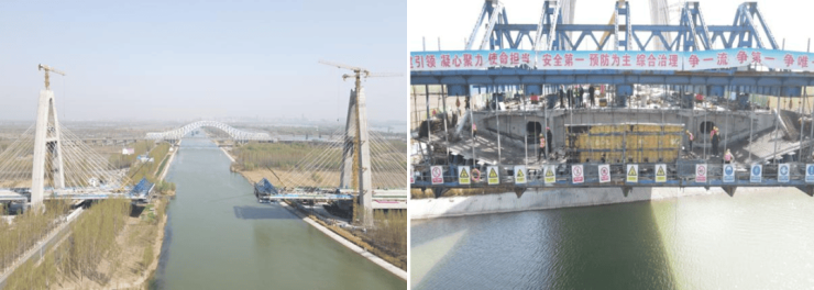 太白湖区京杭运河特大桥主桥双塔斜拉桥已按期完成主塔合龙,并提前完成边跨合龙。为确保按照节点要求完成中跨合龙,工区精确卡控每节段悬浇箱梁施工周期,积极增加班组人员,采取24小时倒班施工保证每道工序按照计划时间顺利完成。当前悬臂挂篮正沿已浇筑梁段有序前移,在确保混凝土构件强度的前提下施工机械协同推进,各工序验收合格后进入下一节段循环。