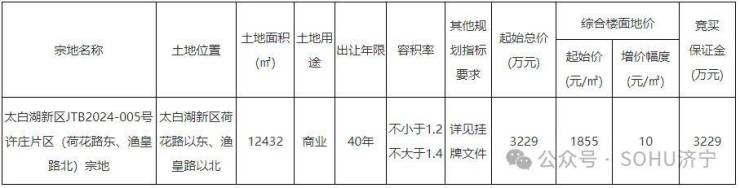 成交价3229万元!济宁太白湖新区1宗商业用地成功出让