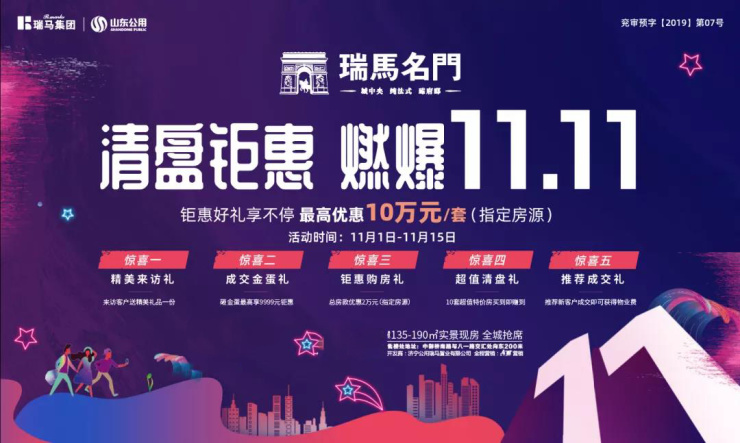 清盘钜惠,燃爆双十一!兖州瑞马名门实景现房钜惠豪礼享不停
