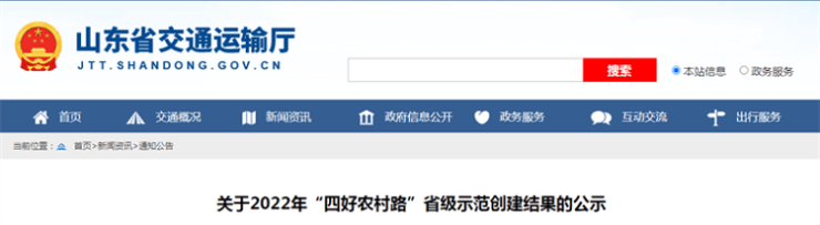 2月14日,山东省交通运输厅官网发布《关于2022年“四好农村路”省级示范创建结果的公示》,根据《“十四五”期省级“四好农村路”示范创建工作方案》和《关于组织开展2022年“四好农村路”省级示范市(县)暨“四好农村路”全国示范县创建工作的通知》要求,
