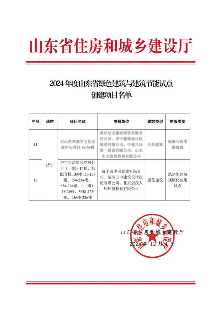 连获殊荣,品质可鉴。继能源蓝城·春风仁里入选山东省住房和城乡建设厅公布了第二批高品质住宅试点项目名单后,12月4日,项目再次入选2024年度山东省绿色建筑与建筑节能试点创建项目名单,成为济宁市唯一入选的住宅项目!